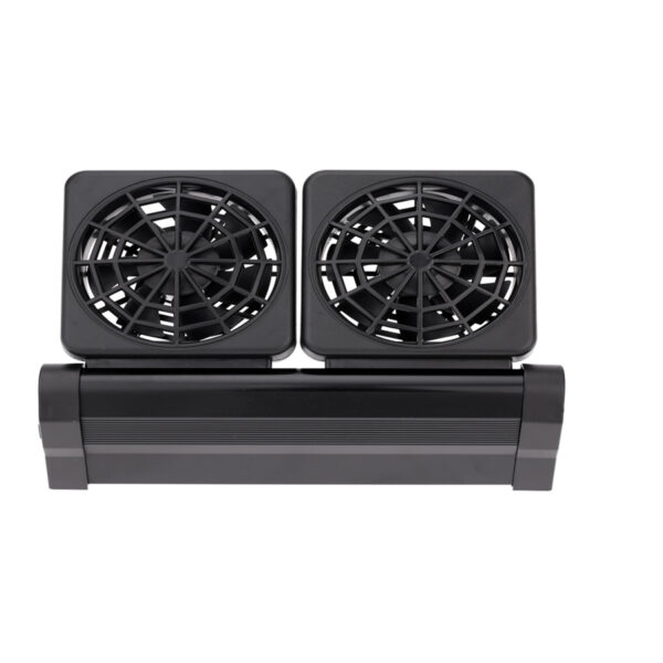 يعتبر نظام تبريد المراوح المتطور الحل المثالي والفعال للحفاظ على استقرار درجة حرارة المياه وحماية سكان حوضك من الإجهاد الحراري خاصة خلال فصل الصيف أو في المناطق الحارة حيث تم تصميم هذه المنظومة لتعمل بهدوء تام وكفاءة عالية في خفض حرارة المياه بمقدار يتراوح بين درجتين إلى أربع درجات مئوية من خلال تقنية دفع الهواء المستمر التي تسرع عملية التبخير الطبيعي والتبريد ويتميز الجهاز بتصميم أنيق وعصري يسهل تركيبه على حافة الزجاج مباشرة مع إمكانية تعديل زاوية تدفق الهواء لضمان أقصى استفادة ممكنة وتأتي المراوح مزودة بمفاتيح تحكم مستقلة تسمح لك بضبط قوة التبريد بما يتناسب مع حجم حوضك واحتياجات كائناتك الحية من أسماك ونباتات وروبيان حساس ويمتاز المنتج بكونه موفراً للطاقة ومصنوعاً من مواد مقاومة للرطوبة تضمن عمراً تشغيلياً طويلاً مما يجعله القطعة الأساسية والضرورية لضمان بيئة مائية باردة وصحية ومنتعشة طوال العام